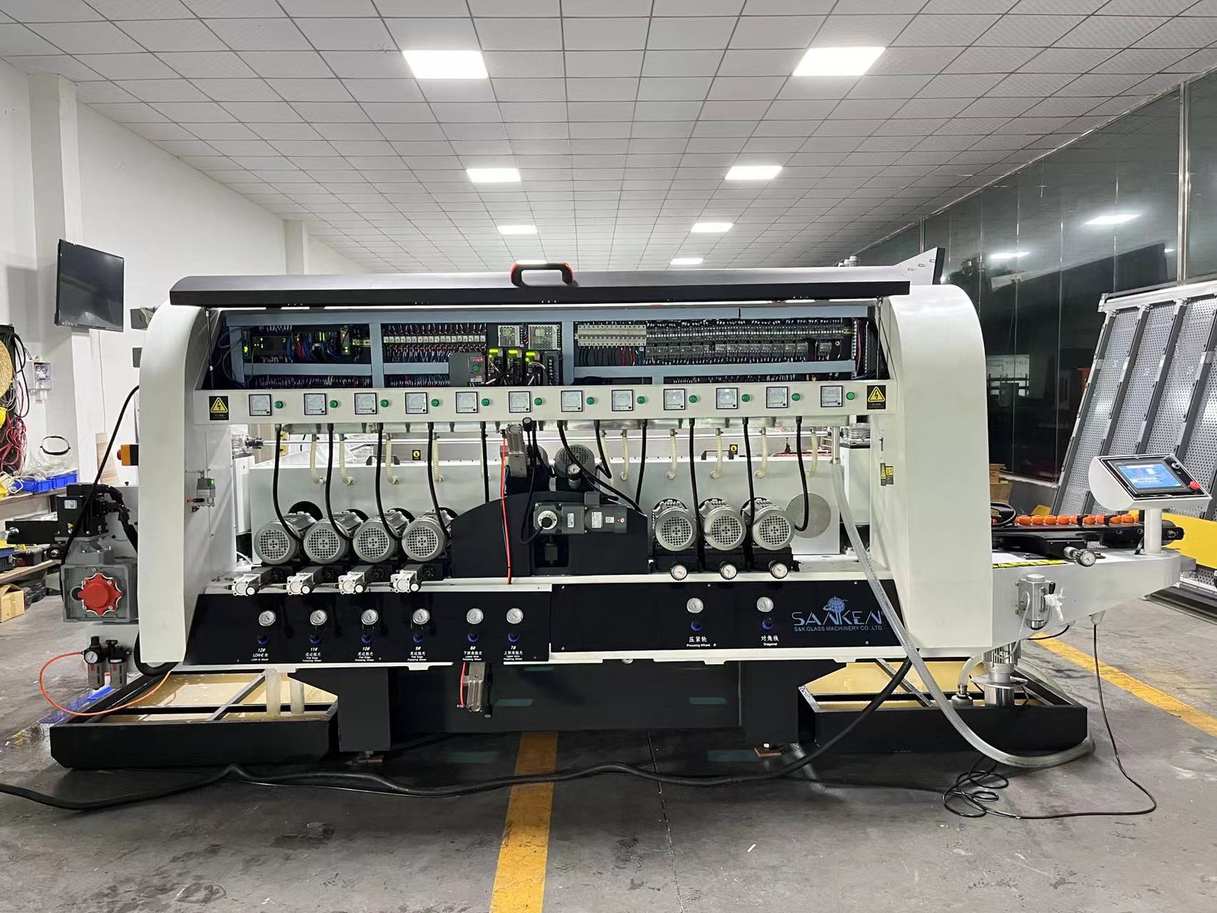 SANKEN glass straight-line double edger machine , positioned at the highest end of the glass deep processing industry, we made this glass straight-line double edger machine with the most advanced technology and the best materials. The SANKEN glass straight-line double edger machine has the advantages of straight edge high-efficiency processing, good glass polishing effect, high equipment stability, extremely low failure rate, full automation, and convenient maintenance. The main components of the glass straight-line double edger machine are composed of glass loading section, glass grinding section and glass unloading section. The main body of glass straight-line double edger machine, made of stainless steel or other specially treated steel, is durable and corrosion resistant. The glass straight-line double edger machine is all driven by servo motors, and the operation can be controlled by PLC touch screen. SANKEN glass has a frequency conversion speed control system on both sides, which can automatically detect the size and thickness of glass of different sizes and thicknesses, and also has an automatic compensation function to ensure the best grinding and polishing effect. Equipment maintenance is very simple, such as automatic alarm prompting replacement of grinding wheel wear, to ensure that the moving part of the glass is clean and tidy, and there is no glass slag, so as to ensure that the glass will not be damaged by gaps. It is very helpful to the processing effect. With the washing machine, drilling machine, etc., a complete automatic glass processing production line can be formed.