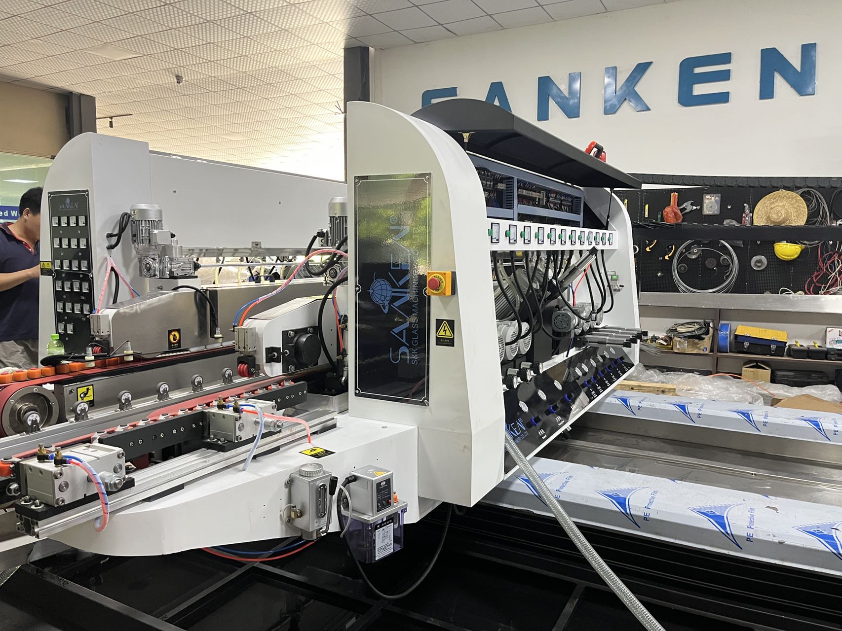 Линия двойной кромки стекла SANKEN специально разработана для глубокой обработки стекла, такой как гравировка стекла, линия по производству закалки стекла, линия по производству стеклопакетов, линия для трафаретной печати на стекле и т. д.