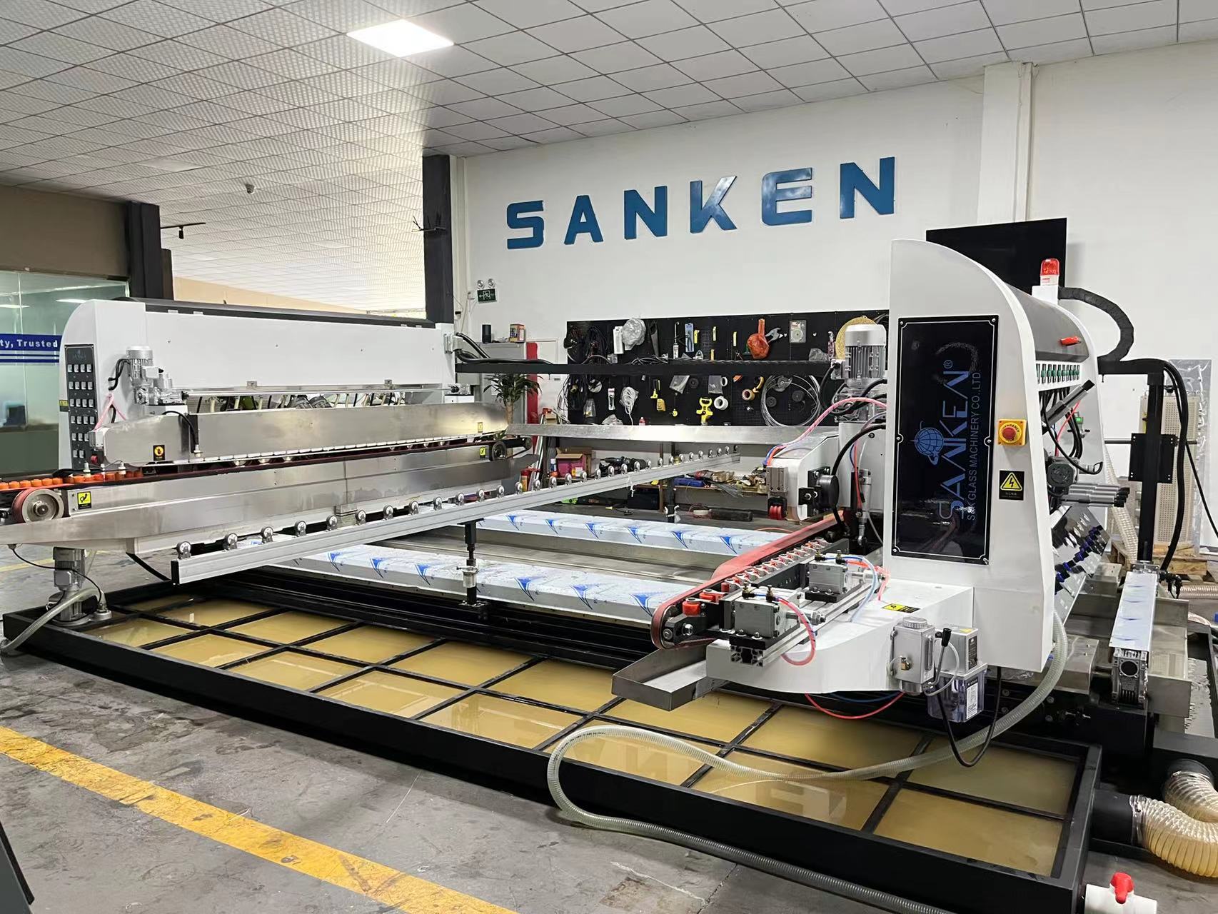 SANKEN glass double edging machine, positioned at the highest end of the glass deep processing industry, we made this glass double edging machine with the most advanced technology and the best materials. The SANKEN glass double edging machine has the advantages of straight edge high-efficiency processing, good glass polishing effect, high equipment stability, extremely low failure rate, full automation, and convenient maintenance. The main components of the glass double edging machine are composed of glass loading section, glass grinding section and glass unloading section. The main body of glass double edging machine, made of stainless steel or other specially treated steel, is durable and corrosion resistant. The glass double edging machine is all driven by servo motors, and the operation can be controlled by PLC touch screen. SANKEN glass has a frequency conversion speed control system on both sides, which can automatically detect the size and thickness of glass of different sizes and thicknesses, and also has an automatic compensation function to ensure the best grinding and polishing effect. Equipment maintenance is very simple, such as automatic alarm prompting replacement of grinding wheel wear, to ensure that the moving part of the glass is clean and tidy, and there is no glass slag, so as to ensure that the glass will not be damaged by gaps. It is very helpful to the processing effect. With the washing machine, drilling machine, etc., a complete automatic glass processing production line can be formed.
